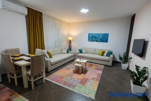 Tirana Contact Apartment situa-se em Tirana, a cerca de 2,8 km de Praça Skanderbeg e 7,2 km de Teleférico Dajti Ekspres, e disponibiliza acomodações com acesso Wi-Fi gratuito, ar condicionado e um restaurante.