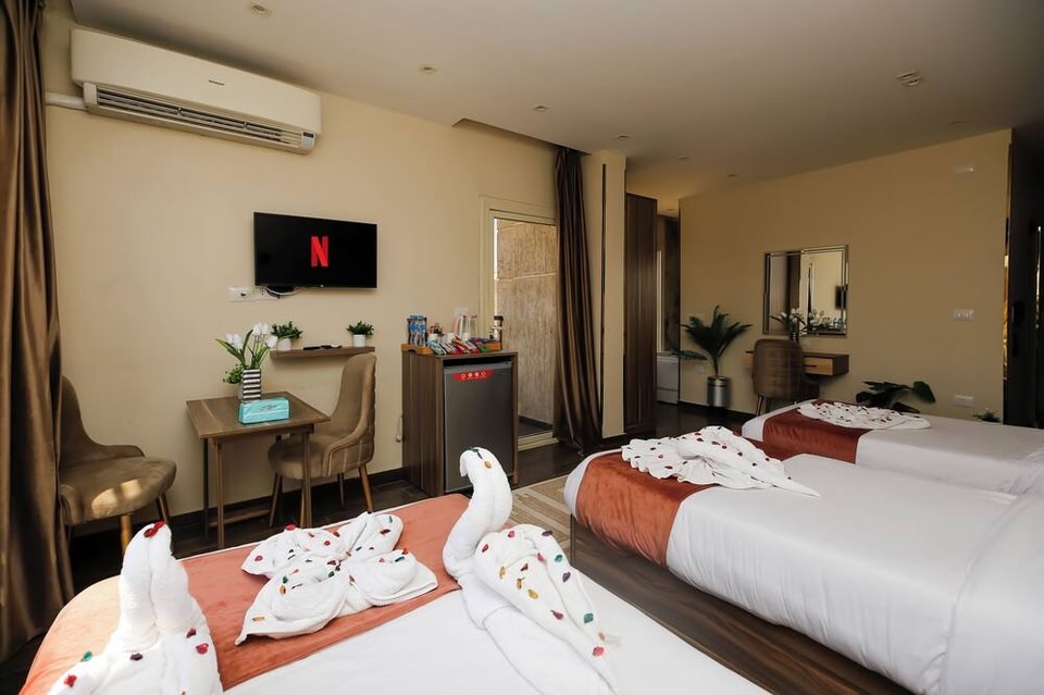 Located in Kafrat al Jabal, a neighborhood in Giza, Hammis Pyramids View is near a metro station. Grand Egyptian Museum and Egyptian Museum are cultural highlights, and some of the area's notable landmarks include Giza Pyramid Complex and Great Sphinx of Giza. Looking to enjoy an event or a game while in town? See what's happening at Al-Ahly Sports Club or Arab Contracters Stadium. Along with dry cleaning, this smoke-free hotel has a 24-hour front desk and free breakfast. Free WiFi in public areas and free self parking are also provided. Change of towels is available on request. Hammis Pyramids View offers 8 accommodations with designer toiletries and hair dryers. Rooms open to balconies. Each accommodation is individually furnished and decorated. 35-cm LCD televisions come with premium digital channels. Bathrooms include bathtubs or showers with jetted bathtubs and rainfall showerheads. Bathrooms are also outfitted with bidets, complimentary toiletries, and toothbrushes and toothpaste. This Giza hotel provides complimentary wireless Internet access, with a speed of 500+ Mbps (good for 6+ people or 10+ devices). Change of towels and change of bedsheets can be requested. Housekeeping is provided daily.