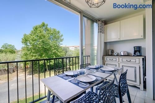 Appartement T2 climatisé avec piscine secteur richelieu localiza-se em Cap d'Agde e fornece acomodações com uma piscina privada e acesso Wi-Fi gratuito. Os hóspedes beneficiam de uma varanda e uma piscina exterior sazonal.