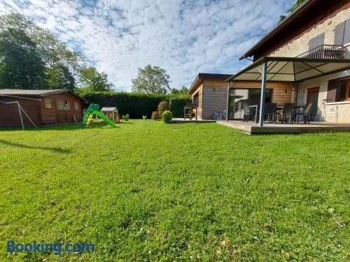 A 200 mètres du lac d'Annecy, spacieux appartement 3 chambres avec terrasse et jardin, a property with a garden, is situated in Sévrier, 42 km from Halle Olympique d'Albertville, 42 km from Bourget Lake, as well as 47 km from Stade de Genève.
