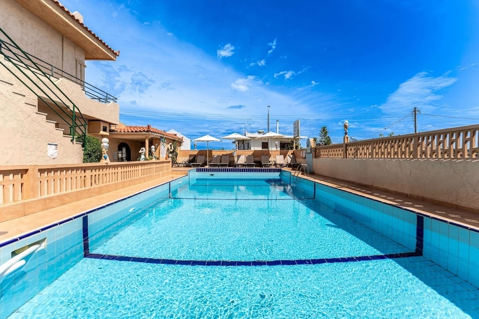 Erato Hotel tem um jardim, terraço, um restaurante e bar em Kokkíni Khánion. Este hotel de 3 estrelas dispõe de uma piscina exterior sazonal, quartos com ar condicionado, acesso Wi-Fi gratuito e casa de banho privativa.