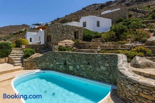 Apresentando uma piscina exterior, um jardim e um terraço, Villa Isabella Family villa close to the beach fornece acomodações em Míconos com acesso Wi-Fi gratuito e vista do mar.