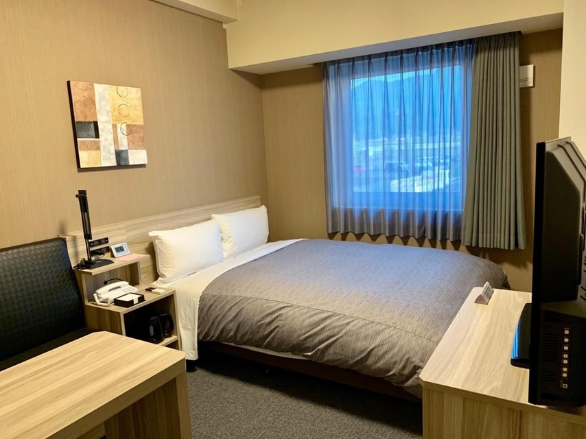 Hotel Route Inn Takefu Inter oferece um serviço impecável e todas as facilidades necessárias para os visitantes.Mantenha uma comunicação perfeita usando o Wi-Fi gratuito da acomodação.Experimente as maravilhas de Fukui com facilidade utilizando os serviços prestados no alojamento.O alojamento oferece estacionamento gratuito para os hóspedes que chegam com o seu próprio meio de transporte.Planeje facilmente suas atividades diárias e necessidades de viagem com o serviço de concierge fornecido pela recepção.Caso necessite, o serviço de bilheteria pode até ajudá-lo a reservar ingressos e garantir reservas para os melhores shows e eventos nas proximidades. Quer seja uma estadia prolongada ou simplesmente precise de roupas limpas, o serviço de lavanderia fornecido pela acomodação garante que suas roupas de viagem permaneçam impecáveis e acessíveis.Durante os dias e noites de lazer, as comodidades no local, como o serviço de quartos, permitem-lhe desfrutar plenamente da sua acomodação.Para a saúde e bem-estar de todos os hóspedes e funcionários, fumar é restrito exclusivamente às zonas designadas. O alojamento está equipado com todas as conveniências necessárias para uma noite de sono tranquila. Para garantir uma estadia agradável, uma seleção de quartos do alojamento estão equipados com ar condicionado ou serviço de roupa de cama, todos concebidos a pensar no seu conforto. Em alguns quartos, os hóspedes da acomodação podem desfrutar de entretenimento de alto nível com streaming de vídeo no quarto, jornal diário ou TV disponível para sua conveniência.Em salas específicas, tudo o que você precisa para fazer um café ou chá está convenientemente disponível para seu uso. Mantenha sua limpeza e conforto usando roupões de banho, toalhas ou secador de cabelo disponíveis em banheiros selecionados. Embarque na sua experiência de férias da maneira mais ideal. Comece todas as manhãs da sua visita com um café da manhã no local. No alojamento, uma variedade de opções de refeições deliciosas e de fácil acesso estão disponíveis para satisfazer o seu apetite sempre que surgir.Durante todo o dia e à noite, coma algo nas máquinas de venda automática da acomodação sempre que desejar.
