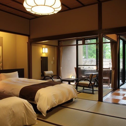 This Japanese Spa hotel is a 75min drive from Matsumoto IC, or in 110min bus/train ride from Matsumoto Station. 53 guest rooms from Japanese-style to Superior Rooms with private open-air hot springs, are equipped with A/C, bath/Shower toilet, TV, Phone, Fridge, Coffee/tea facilities, Hairdryer, Towels, Toothbrush, Comb, Razor, Shower cap, Cotton buds, Sewing kit, Lotion, Face Milk, Hand soap, Shampoo/Conditioner, Body soap and Yukata robes. Barrier free room is available, reservation required. Services include Hot springs, Restaurants, Lounge, Stalls, Karaoke Rooms and Car Parking.