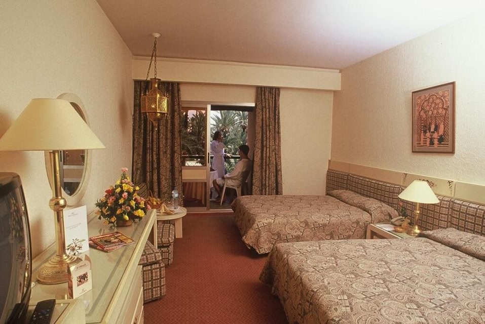 Luxurious Oasis in MarrakechUnwind in Style: The Semiramis hotel offers a serene escape in a 4-hectare park, boasting a refreshing outdoor pool and a rejuvenating spa for ultimate relaxation.Culinary Delights: Indulge in a variety of dining experiences, from traditional Moroccan cuisine at Le Chellah to Mediterranean dishes at La Strada and L’Oasis, all while enjoying the lush surroundings.Endless Entertainment: Stay active with tennis and volleyball, then pamper yourself at the spa with a steam bath and massages. As night falls, head to the on-site nightclub for a memorable evening.Book your stay at Semiramis now and experience luxury and comfort in Marrakech's exotic setting.