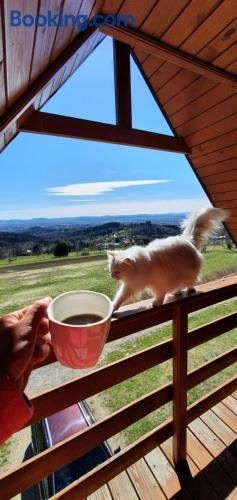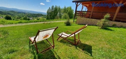 Apresentando vista da montanha, Domki Drewniane Królewska Góra apresenta acomodações com um jardim e varanda, a cerca de 48 km de Centro Comercial Nowy Świat.