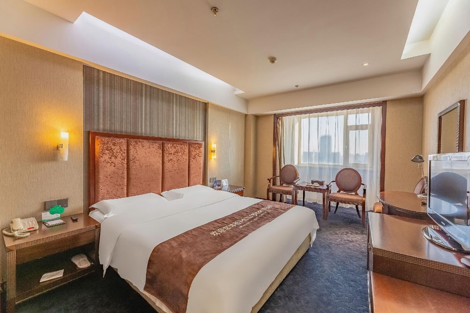 The Changchun International Trade Hotel (Guomao fandian) is located at the intersection of Chongqing Lu and the northern part of Renmin dajie. The railway station is only 2 kilometers from the hotel and the airport is 15 kilometers away. Changchun's biggest commercial street, and the center of Changchun, are within walking distance. All rooms and suites are equipped with satellite TVs, central air conditioning, international direct dial telephones and a private bath. The hotel has a variety of facilities: for businessmen there is an exclusive executive floor, a business center and both conference and function rooms. For guests at leisure there is a sauna, a gym, a massage center, a beauty salon and a night club. The two restaurants here both serve Chinese cuisine, Cantonese and local foods. The Revolving Restaurant offers diners decent views of the city. Disclaimer notification: Amenities are subject to availability and may be chargeable as per the hotel policy.