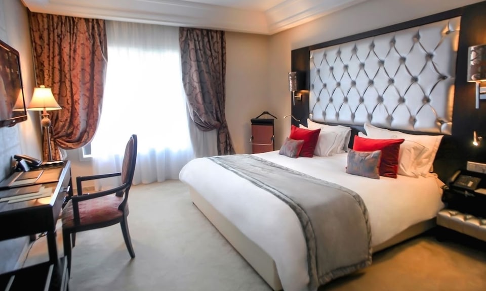 The Russelior Hotel & Spa oferece serviços e comodidades de alto nível, garantindo aos hóspedes o máximo conforto.Mantenha uma comunicação perfeita usando o Wi-Fi gratuito da acomodação. Organize as suas viagens de e para o aeroporto utilizando a conveniente reserva de serviços de transporte do alojamento.Descobrindo Hammamet torna-se ainda mais acessível através dos serviços de transporte disponibilizados no alojamento.O alojamento oferece estacionamento gratuito para os hóspedes que chegam com o seu próprio meio de transporte.Planeje facilmente suas atividades diárias e necessidades de viagem com o serviço de concierge fornecido pela recepção.Garantir ingressos de primeira linha e conseguir reservas de restaurantes muito procuradas torna-se fácil, graças ao serviço de bilheteria da acomodação.Quer seja uma estadia prolongada ou simplesmente precise de roupas limpas, o serviço de lavanderia fornecido pela acomodação garante que suas roupas de viagem permaneçam impecáveis e acessíveis.Desejando relaxamento? As comodidades do quarto, como o serviço de quarto, permitem que você maximize o tempo gasto dentro do quarto. O alojamento é totalmente livre de fumo.Para a saúde e bem-estar de todos os hóspedes e funcionários, fumar é restrito exclusivamente às zonas designadas. O alojamento está equipado com todas as conveniências necessárias para uma noite de sono tranquila. No The Russelior Hotel & Spa , os quartos personalizados oferecem uma opção de configuração que lembra uma sala de estar separada ou até mesmo uma varanda ou terraço.Em alguns quartos, os hóspedes da acomodação podem desfrutar de entretenimento de alto nível com streaming de vídeo no quarto, jornal diário ou TV disponível para sua conveniência. Em salas específicas, tudo o que você precisa para fazer um café ou chá está convenientemente disponível para seu uso. No alojamento, algumas casas de banho estão equipadas com produtos de higiene essenciais, garantindo uma estadia confortável aos hóspedes. Embarque na sua experiência de férias da maneira mais ideal. Comece todas as manhãs da sua visita com um café da manhã no local.Experimente a delícia de uma manhã fresca saboreando um excelente café na cafeteria situada dentro do hotel. No alojamento, uma variedade de opções de refeições deliciosas e de fácil acesso estão disponíveis para satisfazer o seu apetite sempre que surgir.Não importa suas necessidades dietéticas específicas, tenha certeza de que The Russelior Hotel & Spa oferece uma variedade de opções de alimentos para garantir que sua experiência gastronômica seja simplesmente deliciosa.Experimente uma noite fantástica sem esforço! Desfrute de uma noite divertida sem se aventurar além dos limites das instalações de entretenimento do hotel.Se você for particularmente exigente em suas escolhas gastronômicas, certamente apreciará ter acesso às instalações de cozinha fornecidas neste local.Durante a sua estadia no alojamento, uma variedade de atividades e comodidades envolventes garantem uma experiência agradável. Durante seu tempo em The Russelior Hotel & Spa , você ficará encantado com o privilégio único de acessar a praia isolada.Mime-se e mime-se parando nas instalações do spa para uma experiência memorável. No The Russelior Hotel & Spa , uma ampla variedade de comodidades garante uma experiência gratificante durante a sua visita. Torne as suas férias verdadeiramente memoráveis dando um mergulho rejuvenescedor na piscina.No The Russelior Hotel & Spa , o bar da piscina oferece um excelente incentivo para aproveitar horas prolongadas em trajes de banho. Na academia de ginástica da acomodação, você tem a opção de praticar sua rotina diária de exercícios ou simplesmente aliviar o jet lag suando muito.